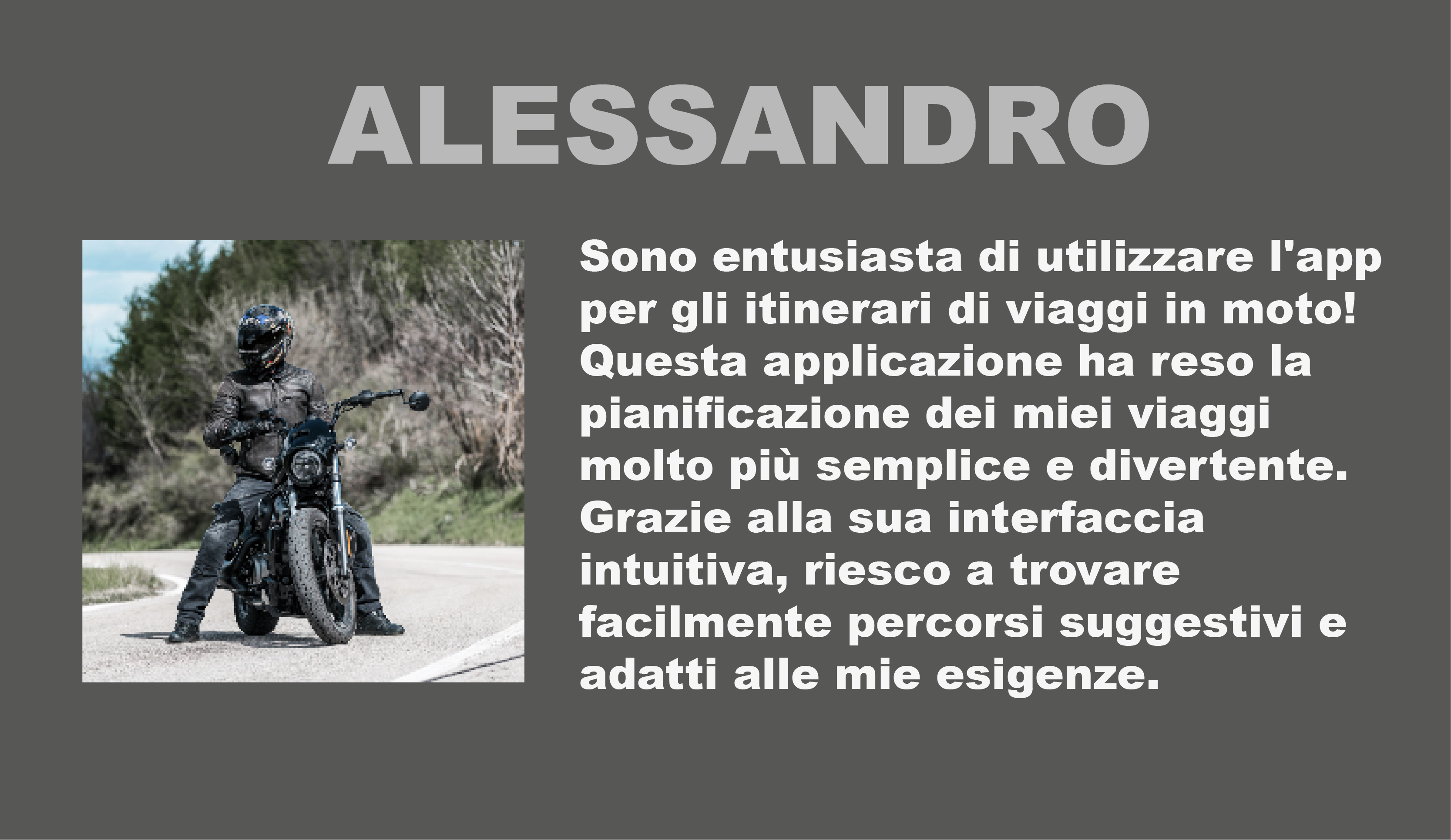 Siamo un gruppo di amici uniti da una grande passione: la moto. Dopo centinaia di chilometri insieme ci siamo resi conto di una cosa: mancava uno strumento che rendesse facile pianificare itinerari su misura per chi viaggia su due ruote.